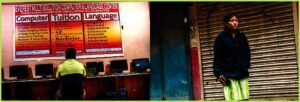 Just now, a guy about 50 looked over my shoulder to see what I was typing. We smiled. I’m sitting outside a cheerful and perfectly skanky eatery with dirty dishes on the concrete floor. Waiting to explode, an old gas canister lies on its side. The young waitress looked very nervous when I said, “Chai,” or when I threw up an index finger, meaning one more. Smartly dressed in his school uniform of button-up shirt, neck tie, creased shorts and dress shoes, a boy of eight eyed me as he walked past. Ten feet away, blue and red plastic bags of food garbage lean against each other. All I smell, though, is the curry being cooked. Since I don’t feel like sweating in agony, I’m not going to order anything. Tall bottles of Gorkha are certainly tempting.