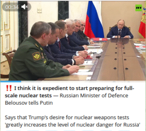 Such an accomplished prevaricator is difficult to read…but he seems sincerely to believe that live detonations are taking place in secret…If so he’s been lied to….nuclear detonations are 100% detectable by technical means. see…https://www.cbsnews.com/news/trump-on-nuclear-testing-government-shutdown-immigration-tariffs-china-60-minutes-transcript/ CBS also has a video of the fatguy babbling… fragment> Norah O’Donnell: Are you saying that… Read more »
