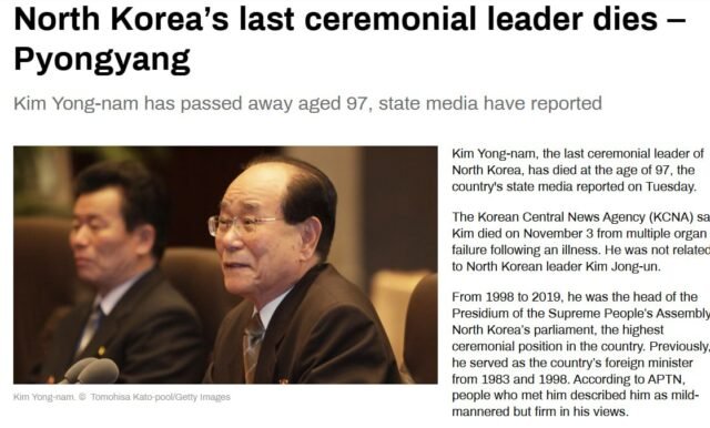 Nov 06 2025 Kim Yong-nam, the last ceremonial leader of North Korea, has died at the age of 97