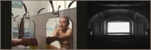 (L): Kōji Yakusho in Wim Wenders’ Perfect Days ; (R): Hiroshi Sugimoto’s “U. A. Play House, New York,” 1978