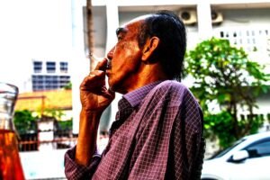 Three mornings at Anh Trần were enough. The Hanoian braggadocious wasn’t just tiresome but menacing. Bombastic boasters are often like that. People who admire them are like squirming worms, not necessarily with red hats. Though I have a high tolerance for all types, I must focus on my thoughts and writing. This morning, then, I began typing before 4AM while sitting outside Ông Bầu in the dark. From the house next door, a woman could be heard coughing several times.