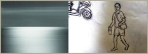 (L): Hiroshi Sugimoto seascape ; (R): sketch by Hà Quang Đại