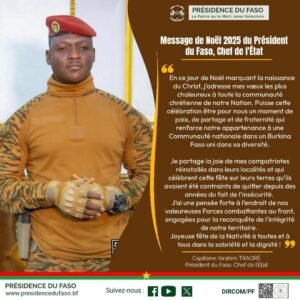 On this Christmas Day marking the birth of Christ, I extend my warmest wishes to the entire Christian community of our Nation. May this celebration be a moment of peace, sharing, and fraternity that strengthens our sense of belonging to a national community in a Burkina Faso united in its diversity.
