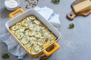 Wash and peel the squashes; slice into thin circles and boil for 3-5 minutes. While the squashes cool, prepare the sauce. Fry the flour in butter. Whisk milk and eggs, then add to flour, stirring until it’s completely dispersed. Add salt and pepper, and remove from heat.