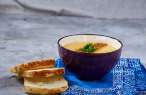 You can serve soup with cream cheese, croutons, pumpkin seeds and chips from squash.