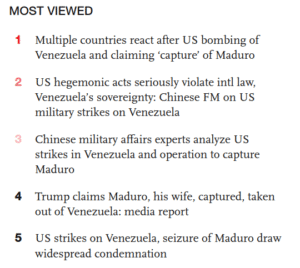 In Global Times, arguably the most significant English-language media outlet in China, the five most-viewed articles are all on Venezuela.