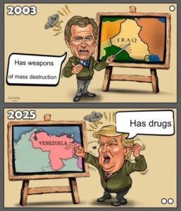 The people of the world suddenly realized that the older threats, Greenland, the Panama Canal, and the latest threats, Mexico, Colombia, Cuba, and Iran, are not the rantings of the demented, but real and present danger, and this empire wants to grow. You and me, babe, may be in the path of that growth by Shock ‘n Awe, Sanctions games*, or replays of Iraq and Afghanistan scenes. The London protestors say: ‘They will do the same to ANYONE WHO CHALLENGES IMPERIALIST INTERESTS’.
