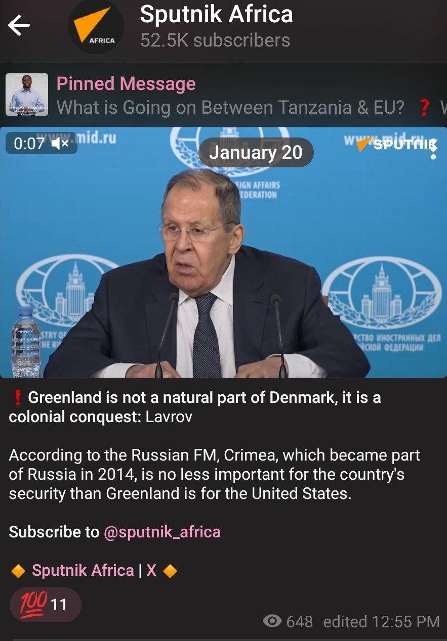 amoral realpolitik in action. Lavrov treads where Angels fear to go: endorsing the coming grab of Greenland via Might Makes Right, in order to accelerate the collapse of NATO and the deranged western Legion. Alea iacta est
