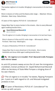 Prof Marandi trolls via word for word mirror tweets from Trump and Pompeo about Iran.