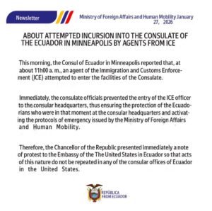 ICE attempts to storm Ecuador consulate in Minneapolis.