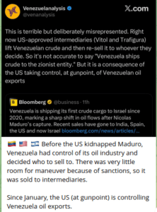 By controlling energy sales, the US aims to reinforce the dollar’s dominance, selling hydrocarbons for greenbacks. The US also keeps Venezuela under financial control as any revenue goes to US companies and from there they dole out pennies to Venezuela that in turn must be spent in the US. “Donroe Doctrine” on steroids.