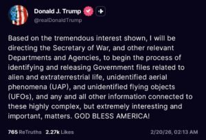 Unbelievable. How many times have we seen this? Distraction needed … call in the Aliens with a hearty God Bless America. Cheap and tawdry! Obama mentioned the Alien files in some discussion, and Trump jumped right to it!