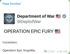 I suspect what is really going on at this moment is the US is trying to swing another convenient ceasefire deal where everyone gets to claim they “won” in some fashion.