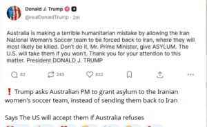— Protection of the US from threats from Iran, including in the future; (There is no threat, so Trump is trying to get out of the fact that he is making war without approval as the US consitution call for. This is so lame — Protect me from Iran calling me names!)