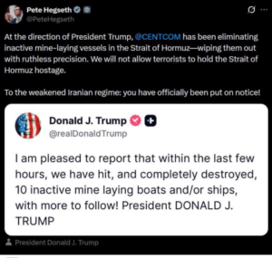 Greasy Hegseth and Donald flew to the rescue, and completely destroyed 10 inactive mine laying boats all with tweets and to all accounts and purposes, only CNN saw anything. Paper airplane war!