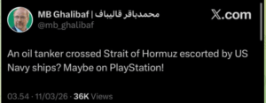 Trump? Kinda lost it. When asked about the Strait of Hormuz, he said it is the ‘boats’ fault that they don’t sail through. When asked about the initial school massacre, he said it was the Iranians that did it. The Turks refuse to fight for the US and Trump said .. well, he does not need them anyway. There was a number of inane comments including Iran has surrendered. One fellow commented: This happens when your president has an IQ lower than his age. It is Starmer’s fault.