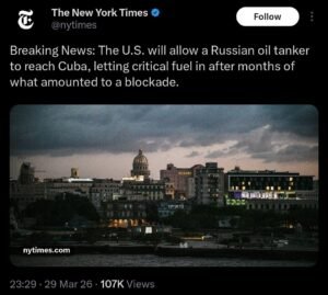 All the rhetoric of the US ‘allowing’ this delivery of what is said to be 100K TONS of crude OIL is only rhetoric. The Cuban oil blockade is now broken! It took some time, but THANK YOU RUSSIA!