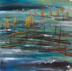 boats, oil on canvas by Lin Fengmian, 1979
