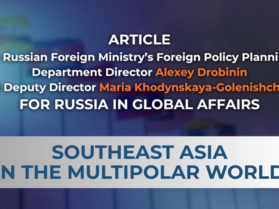 Southeast Asia in the Multipolar World, an article by Russian Foreign Ministry’s Foreign Policy Planning Department Director Alexey Drobinin and Deputy Director Maria Khodynskaya-Golenishcheva for the journal Russia in Global Affairs, April 3, 2026