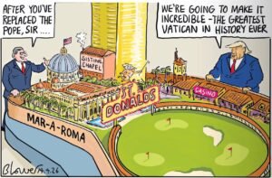 The so-called Strait of Hormuz cheesecloth blockade (military experts can tell us), is placing military structure in place to try again to militarily send Iran to the Stone Age.  So far Demented Donny’s armies do not seem particularly committed to this task in the main.  They can sense the dementia as well as anyone else, but, as medical staff deteriorate in such conditions, the military will deteriorate as well, and start imagining that the nutcases shouting in the Day Lounge for the Demented are reality and may be Jesus himself shouting down, as depicted in the first image.  (Netanyahu may also be present in the Day Lounge for the Demented.  I would bet he is).