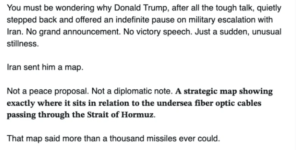 So, everyone’s attention is now away from the expected imminent new attack from the US on Iran.