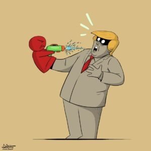 Cartoon by Yemeni artist Kamal Sharaf on the White House Correspondents’ Dinner shooting incident