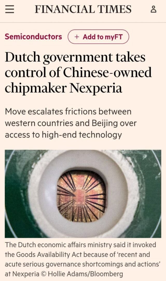 The Dutch government just made an unprecedented move in the global chip wars, seizing control of Nexperia – a Chinese-owned semiconductor company vital to Europe’s auto industry. Using emergency powers under the Goods Availability Act, the Netherlands cited ‘serious governance shortcomings’ as justification for what officials… Continue reading