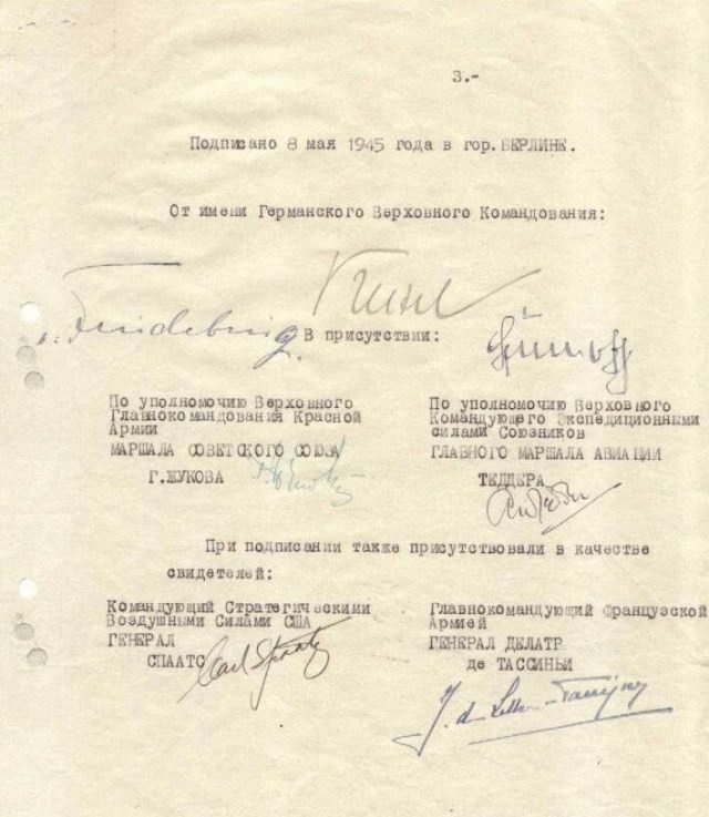 Russian MFAOn May 9, 1945, at 12:43 am, the Instrument of Unconditional Surrender of Nazi Germany was signed, ending the Great Patriotic War and World War II in Europe.