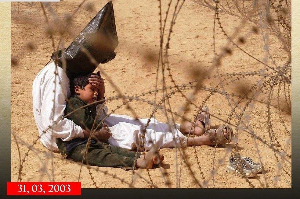 On March 31, 2003, a picture of a blindfolded Iraqi prisoner of war embracing his terrified four-year-old son while detained by US forces in Iraq gained worldwide attention. |media|