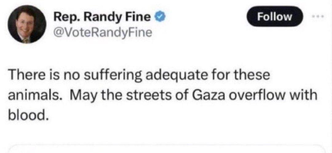 He has repeatedly called for genocide, and infamously expressed joy at the sight of a dead Palestinian baby under the rubble on Twitter.