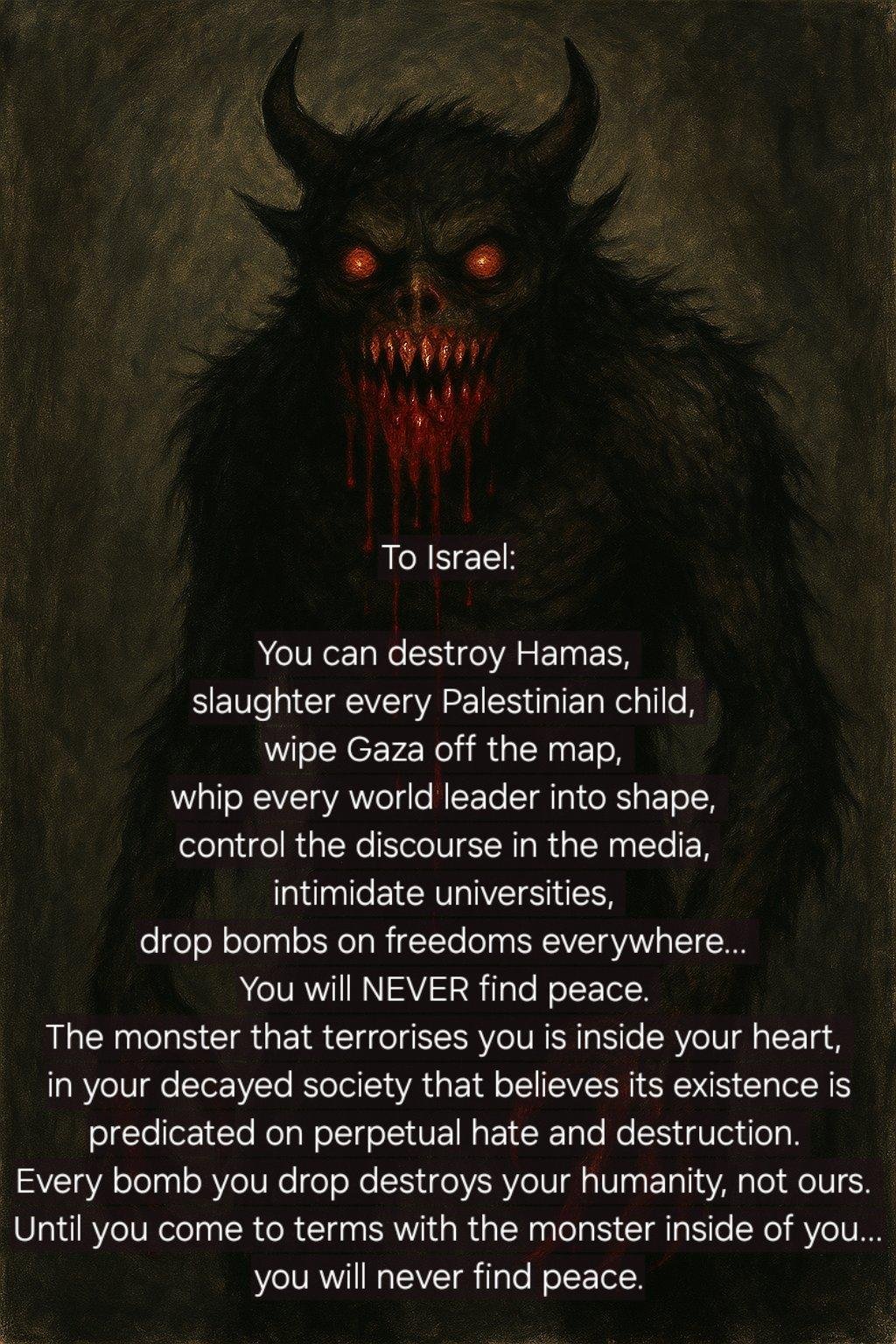 🔻 AM: “Israel is carrying out an open and declared final solution for Gaza (and broader Palestine), and the West gives Israel its blessing, diplomatic protection, and arms, and persecutes people who oppose the Palestinian holocaust. All in broad daylight. Everything must break”]