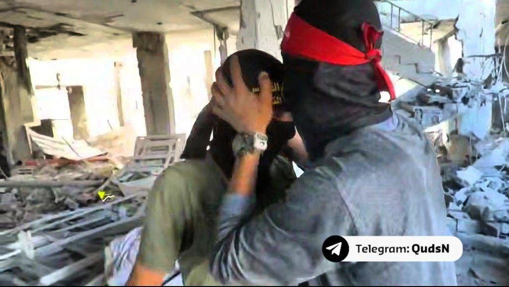 ⭕ 🟡⚫️/🔴 A fighter from Abu Ali Mustafa Brigades (PFLP) kisses the forehead of a fighter of Al-Quds Brigades after tying the Saraya headband for him, in a joint operation in Khan YounisThe only national unity we need