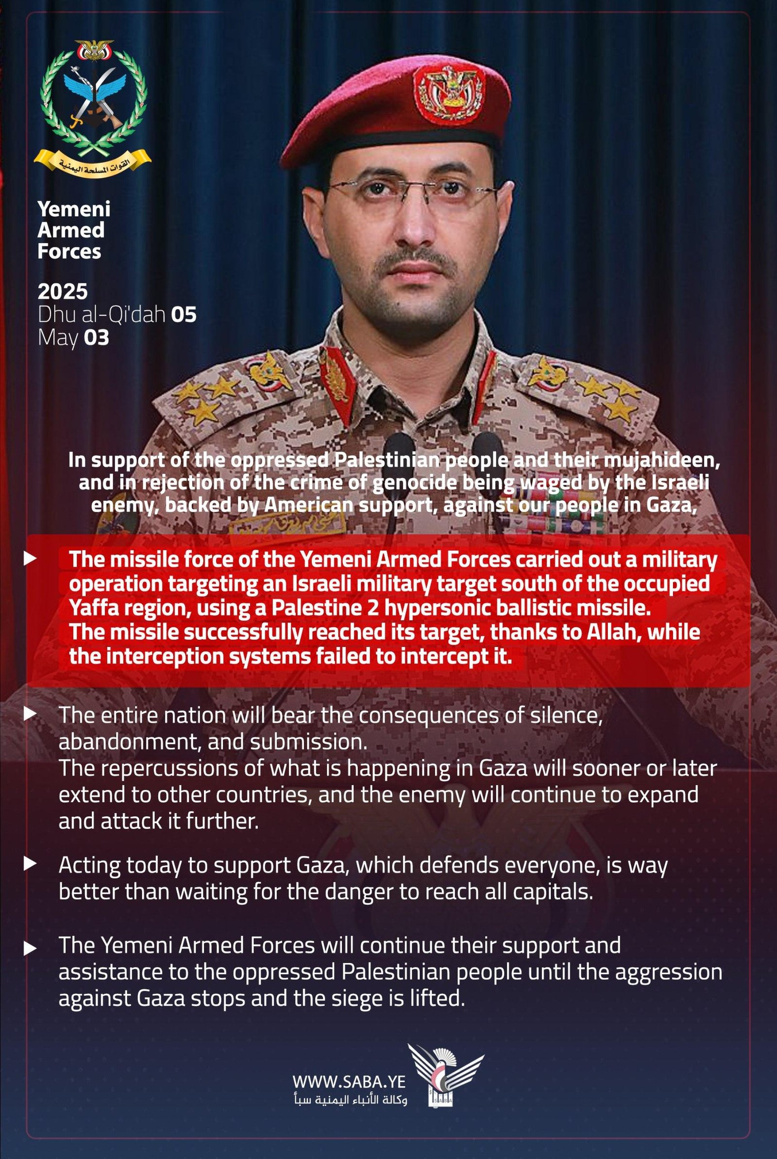 ⭕ 🇾🇪| Yemen has launched 3 missiles & a drone over the past 24 hours against Israel.