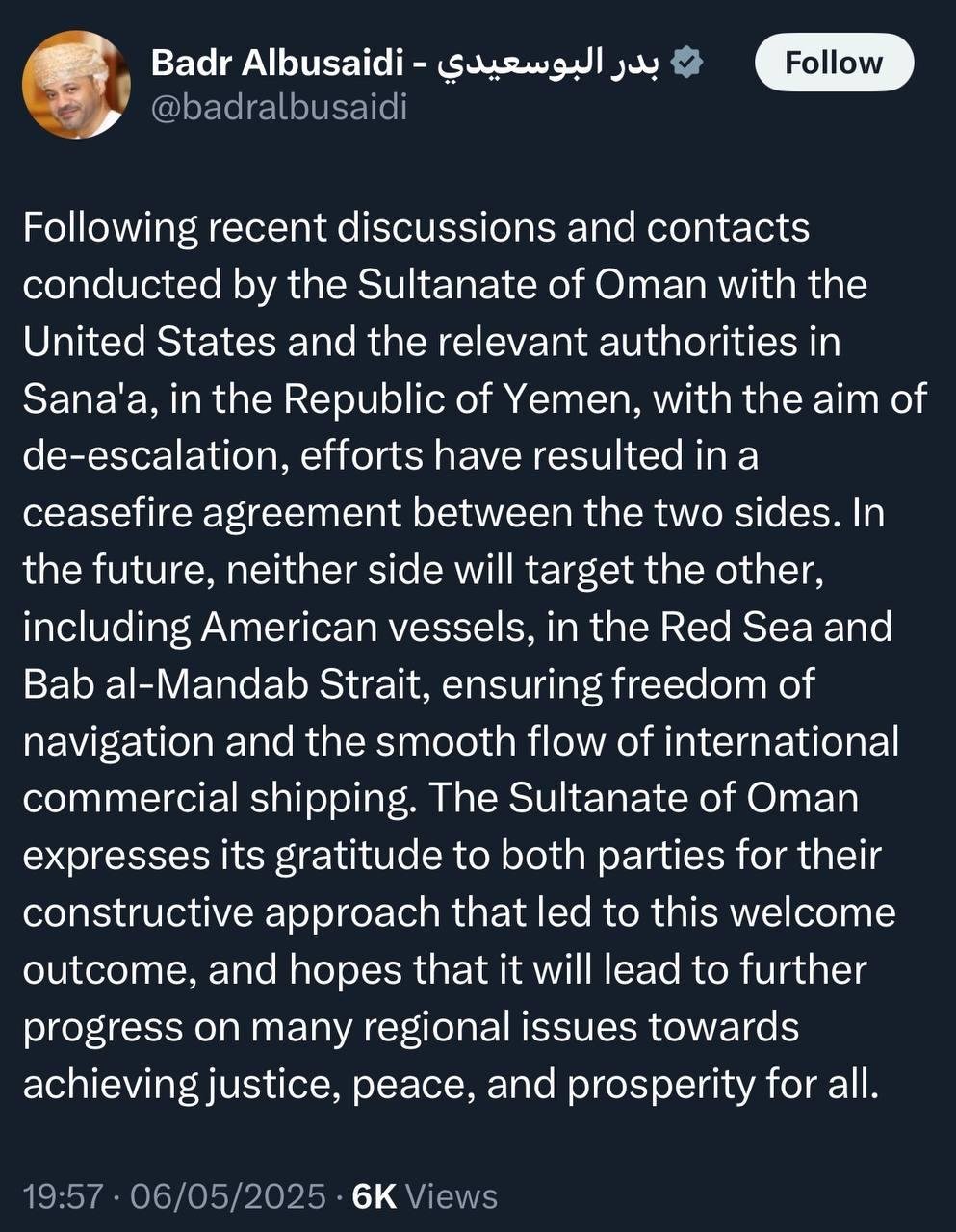 ⭕ 🇾🇪| NEW: Yemen announced BANNING US crude oil exports starting on the 17th of this May.Fleets of companies will be prohibited from crossing the Red Sea, Bab al-Mandab, the Gulf of Aden, the Arabian Sea, and the Indian Ocean.