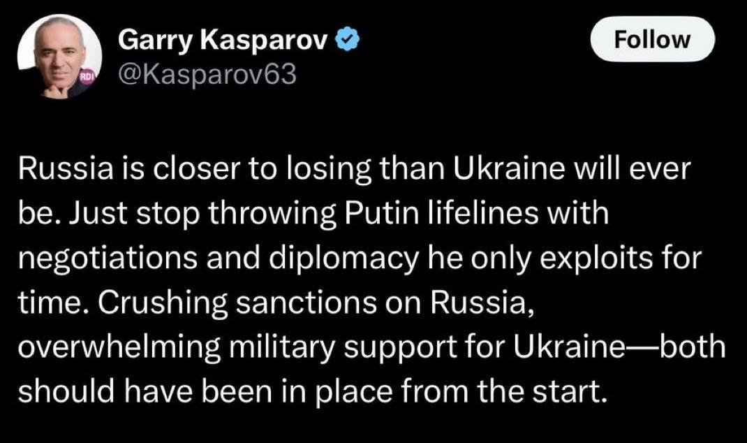 ⭕🔻 Lord Bebo: 🇷🇺 Some of these people think just because they’re good a thing in life, like chess, they’re not stupid and can produce smart commentary.But in fact being good at chess does not translate to geo-political analysis in any way. He has no clue and just repeats the same thing for years and it never comes true.