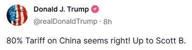 🔻 Howard Lutnick: I couldn’t agree more. We have so many tools: reciprocal tariffs, existing Trump-1 tariffs and most importantly fentanyl tariffs. Our trade team in Geneva will get the best outcome for America.