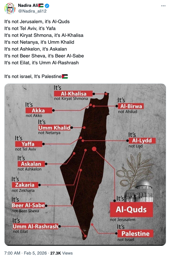 Can I ask you a favor? Don't stop talking about Palestine 🙏🍉🇵🇸 pic.twitter.com/RzijsbyU1Y— NADA 𓂆 (@nadaa01012) February 6, 2026