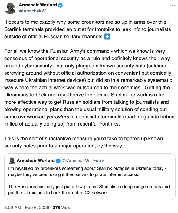 — Armchair Warlord (@ArmchairW) February 6, 2026