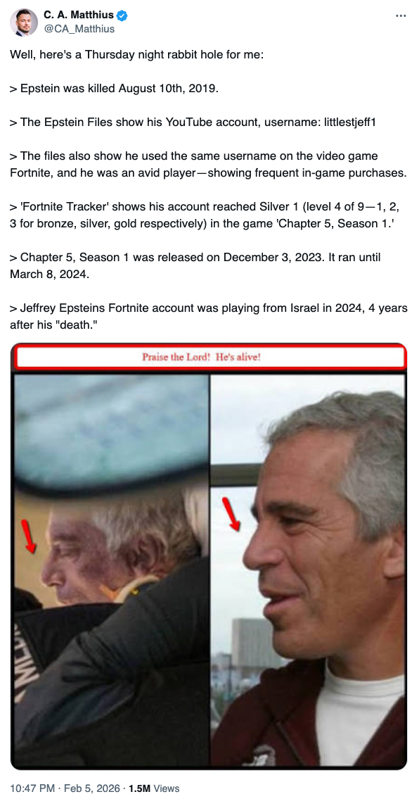 — conspiracybot (@conspiracyb0t) February 6, 2026
