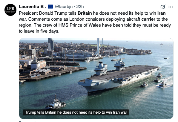 Source artaim pic.twitter.com/saHjIaOXc7— Andrew Bridgen (@ABridgen) March 7, 2026