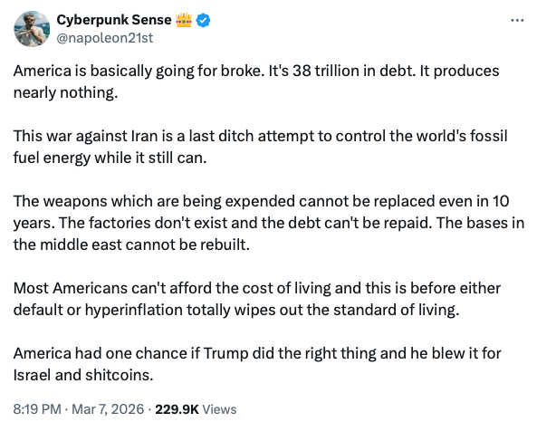 — DD Geopolitics (@DD_Geopolitics) March 9, 2026