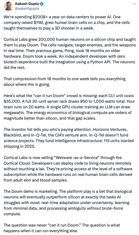 🚨: A petri dish of human brain cells just learned to play DOOM pic.twitter.com/2giOzG1CSF