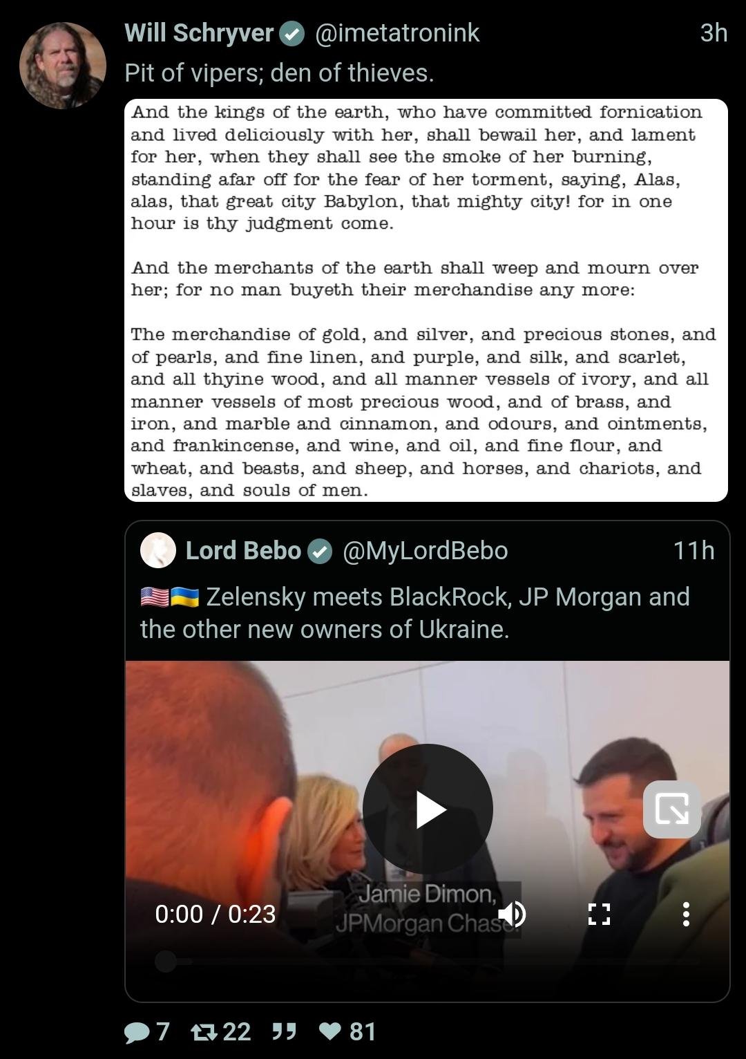 And then, somebody says Russia/Ukraine will talk peace by the end of the year.
