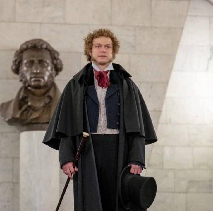 ⭕ 🇷🇺 Yesterday Russia celebrated Alexander Pushkin who had died on February, 10th, 1837, and actor Yura Borisov, dressed as the poet, gave flowers and took pictures with girls in the Moscow metro |media|