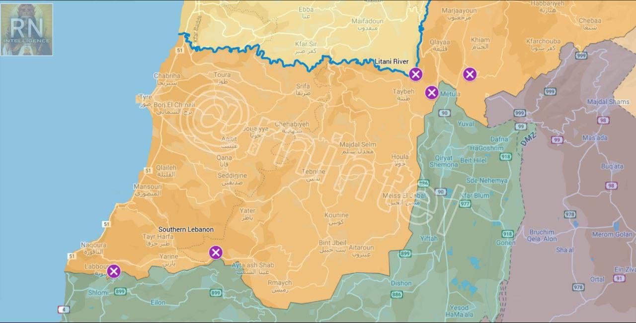 ⭕ MAP: The five ‘strategic points’ where the IDF will remain in Lebanon – notably in the Metula-Litani bottleneckMap Credit: https://t.me/rnintel