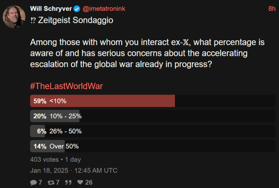 Tagged: 2025, Al-Aqsa Flood Battle, Annihilation, Arabs, Armageddon, China, Christian ZIonism, Civilizational Suicide, DPRK, Egypt, End of Babylonians, End of Old Order, Europe, Forever Wars, Gaza, Genocide, Hamas, Hezbollah, Iran, Iraq, Israel, Jan 2025, Jerusalem, Messianic Judaism, Occupation, Palestine, Russia, Satanism, Spiritual War, Spiritus Mundi, Syria, the Ukraine (404), USA, USUK, War, West Asia, West Bank, World War III, Yemen, Zionism