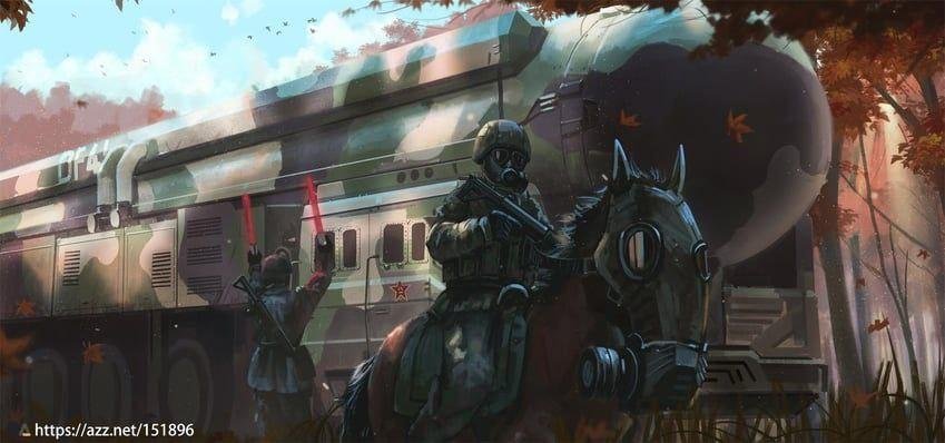 In the video, someone’s hand is stroking the tips of the rockets with a radiation hazard sign painted on them. |media|