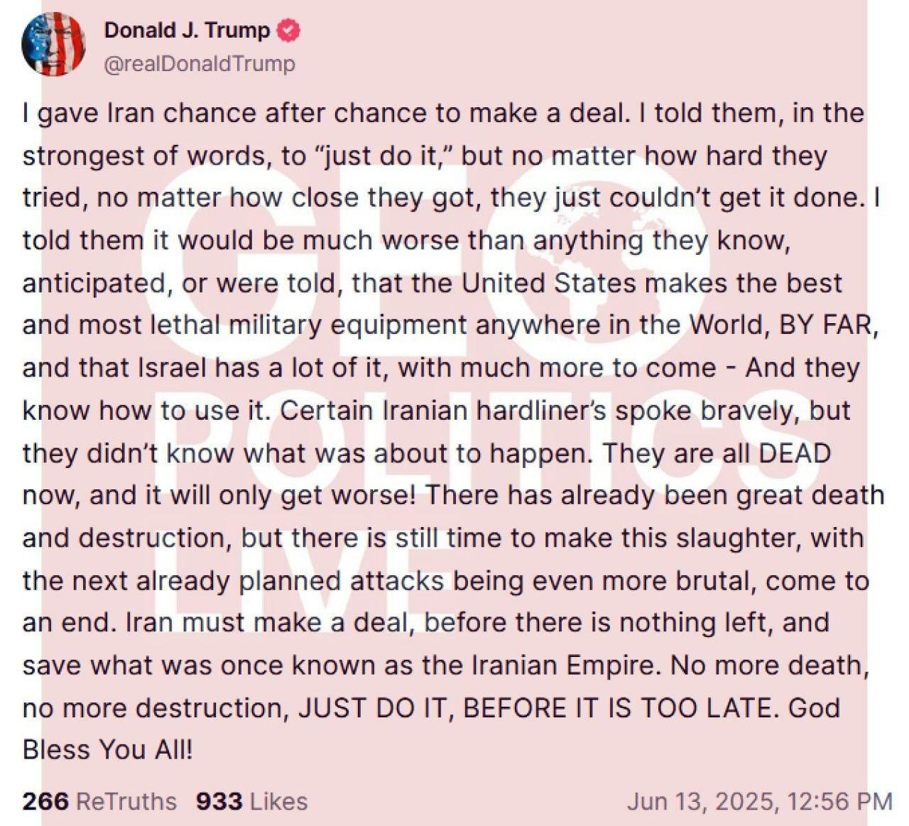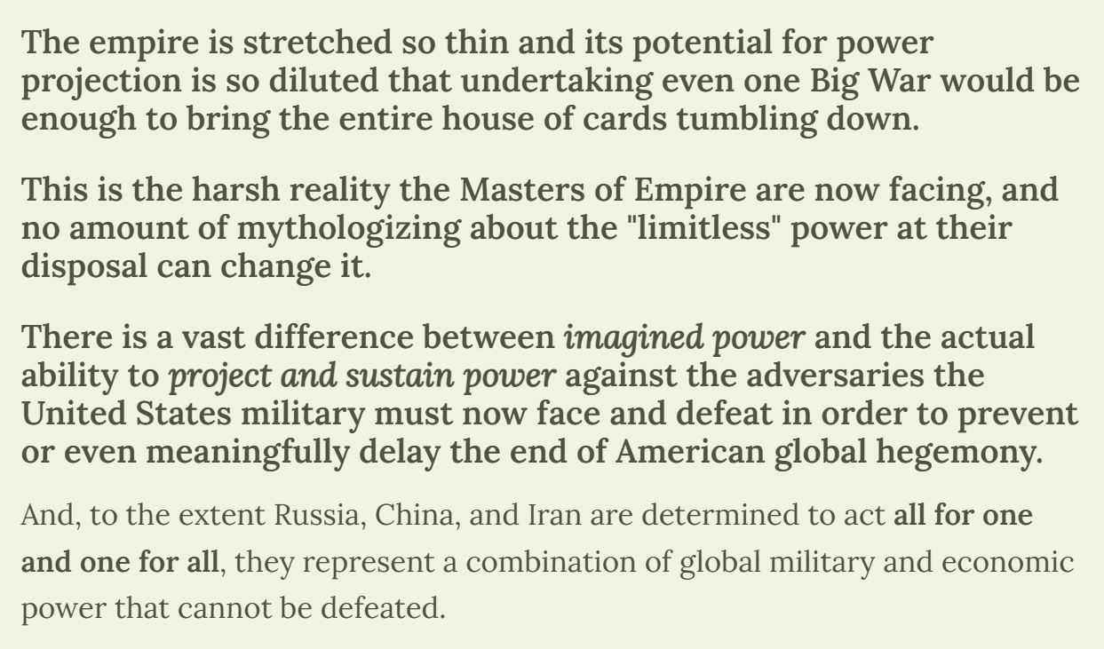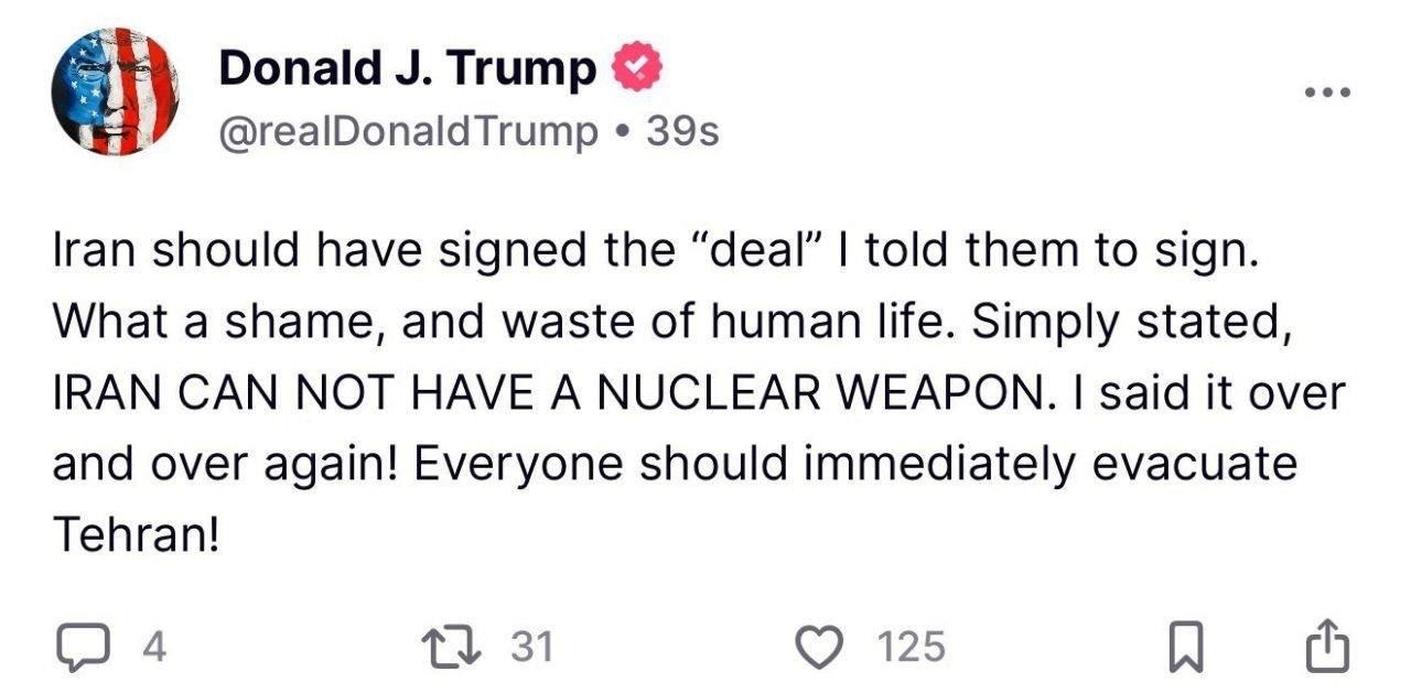 ⭕ In my article today I explain why the US will not dare to confront Iran face to face but will continue supporting Israel as usual. Trump doesn’t even imagine what could hit him if he overtly declares war on Iran. “Surrender” my a…