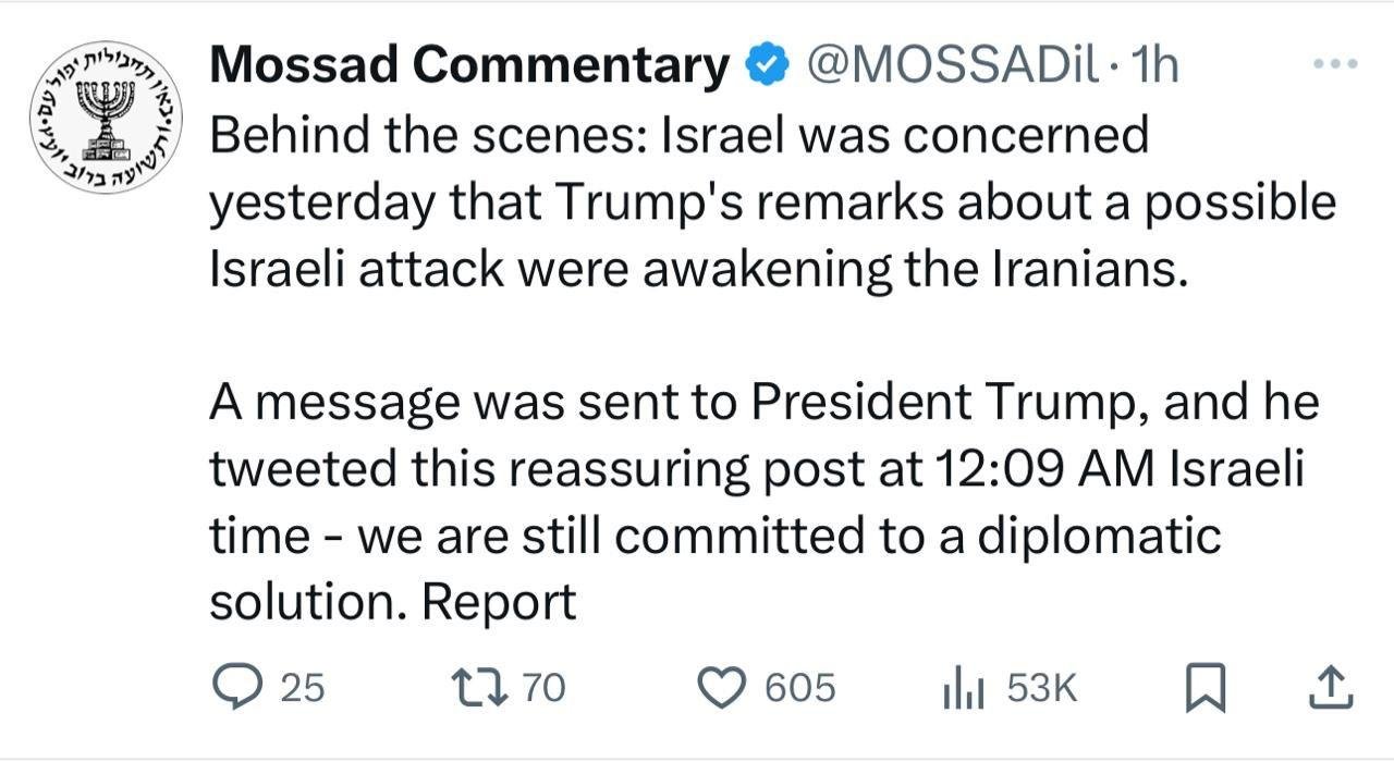 ⭕ Israel is saying it is impossible to destroy Iran’s nuclear program alone. Then why starting the war? To drag the US by the nose?