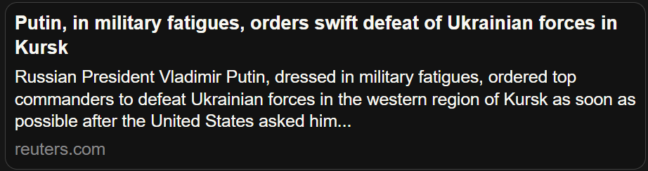 ⭕ ❗️Russia’s troops are entering the FINAL STAGE of the operation to liberate the Kursk region, the Kremlin spokesman announced, citing the Russian Sever Battlegroup’s report to Putin.
